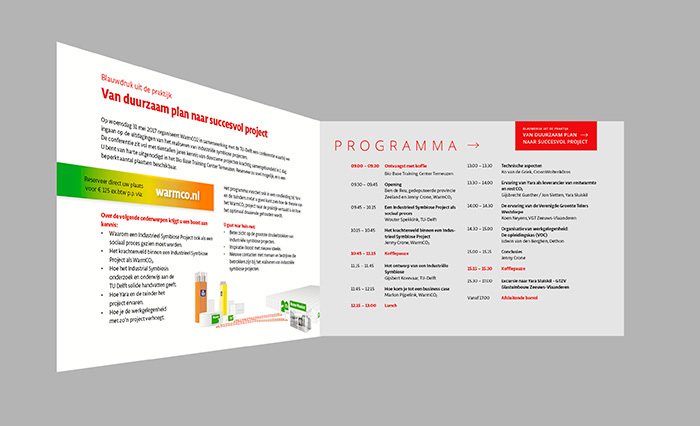 We organiseren de promotie 100% vanuit WarmCO2 waardoor de aandacht, branding, email-adressen en communicatie ook na de conferentie blijft doorwerken (Search engine marketing, follow-up, etc) en uiteindelijk niet bij een Event-bureau verdwijnt. Ook is dit een manier om het maximale effect uit het beschikbare budget te halen.