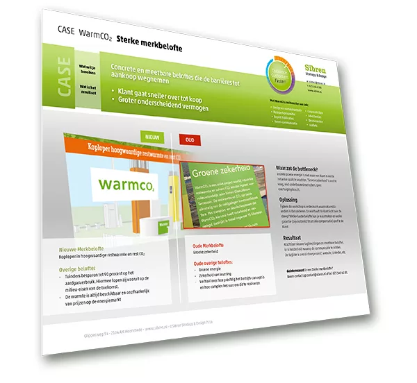 Tijdens de workshop is onderzocht waarin WarmCO2 anders is dan anderen. En wat haalt de klant écht over de streep? Welke harde belofte kun je waarmaken en welke garantie (bijvoorbeeld financiële compensatie) geef je de klant.